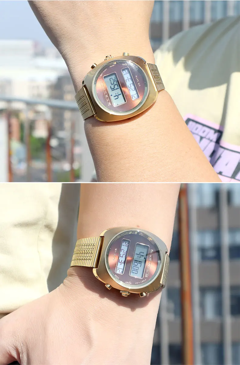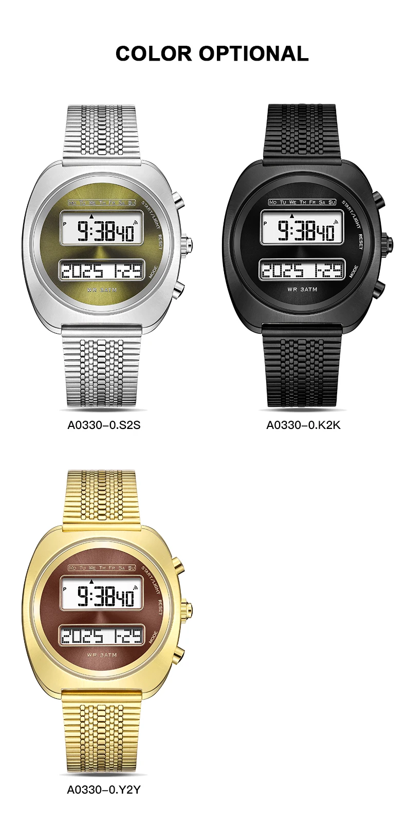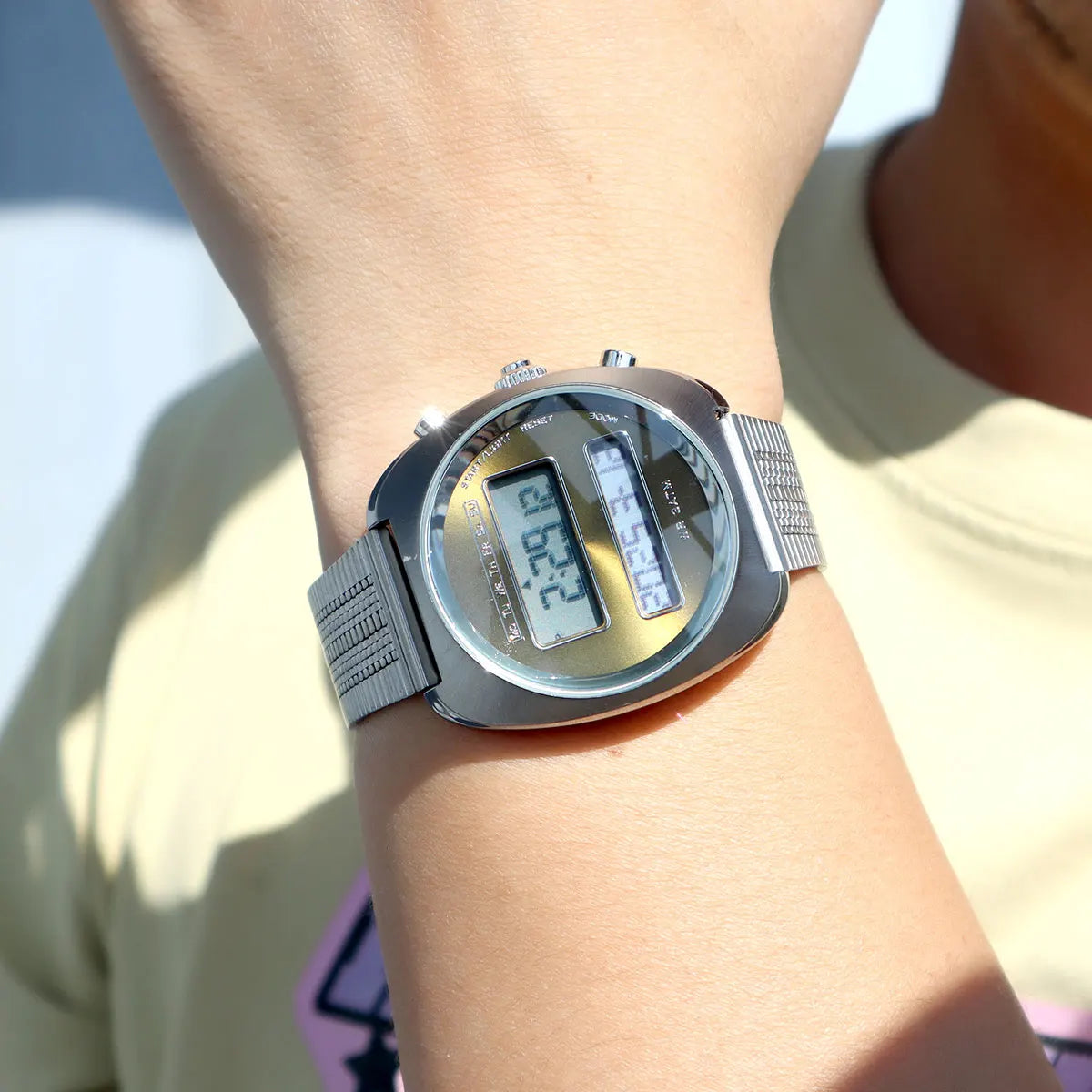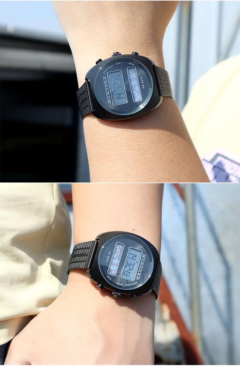 Dual-Display Electronic Watch for Men Retro Style Digital Unisex Wristwatch with Stainless Steel Strap Month Date Year Backlight