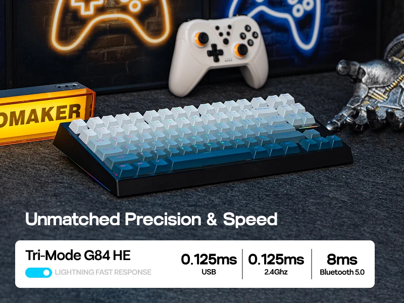 G84 HE offers gradient, luminous keycaps, ultra-precise magnetic switches, and tri-mode connectivity for gamers and style-conscious enthusiasts