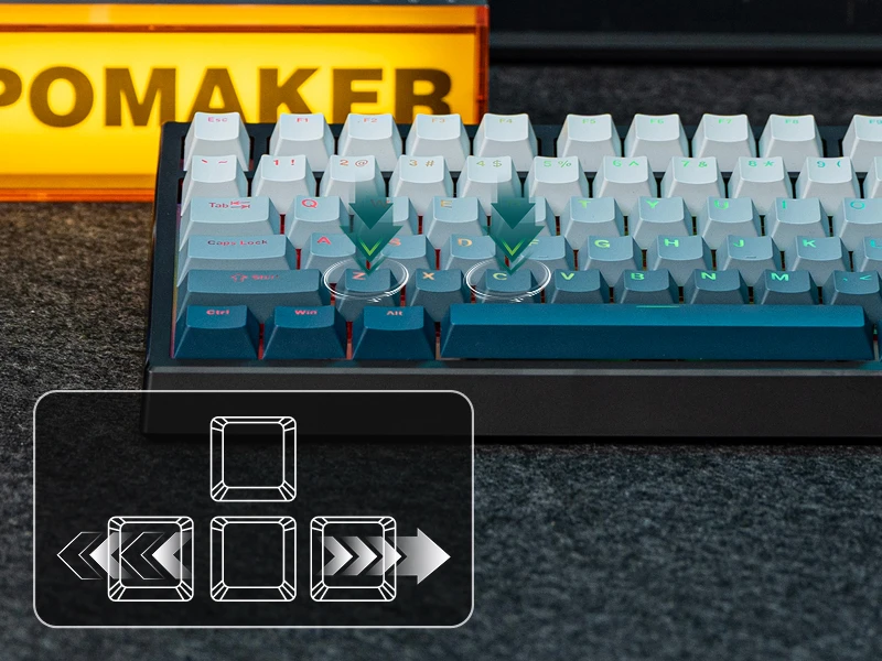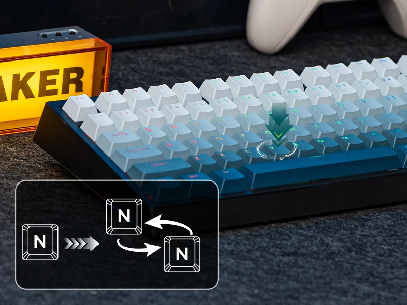Whether you are competitive for FPS, MOBA and Rhythm games, or want to level up on typing speed, the programmable actuation and end travel of G84 HE magnetic keyboard will be the helper you need. With the EPOMAKER software, functional on WIN and Mac system, trigger and release of input can be as precise as 0.01mm of finger movement.