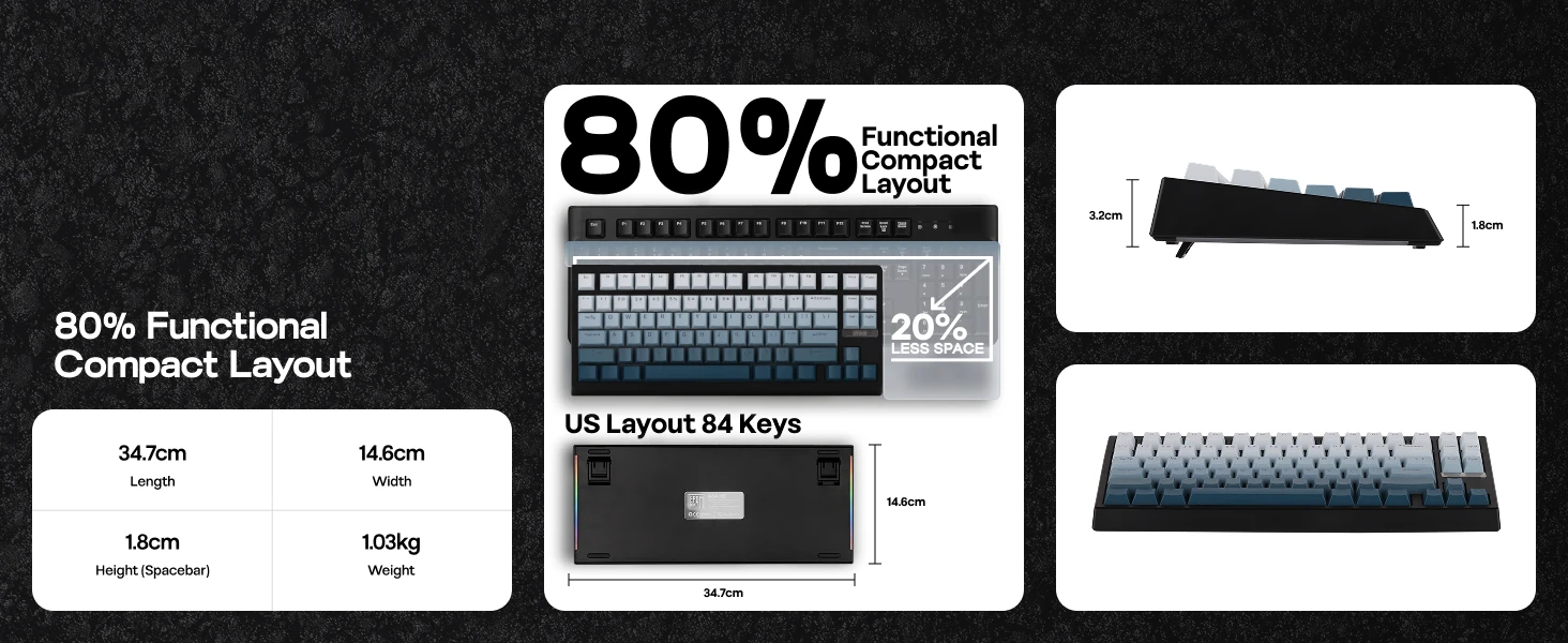 The Epomaker G84 HE delivers precision for gamers, visual enthusiasts, professionals & magnetic lovers with 0.01mm RT, DKS/SOCD & tri-mode, which features shine-through keycaps and Win/Mac compatible.