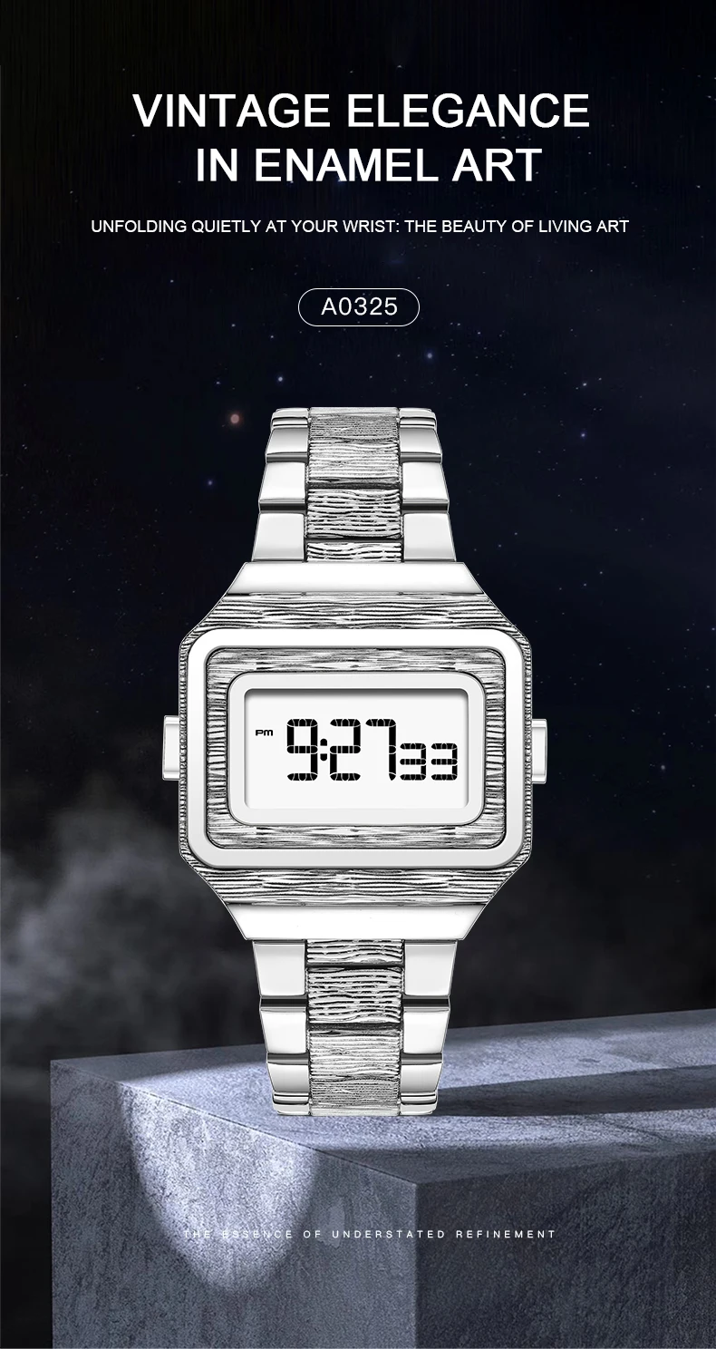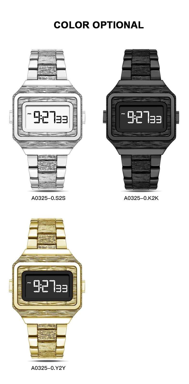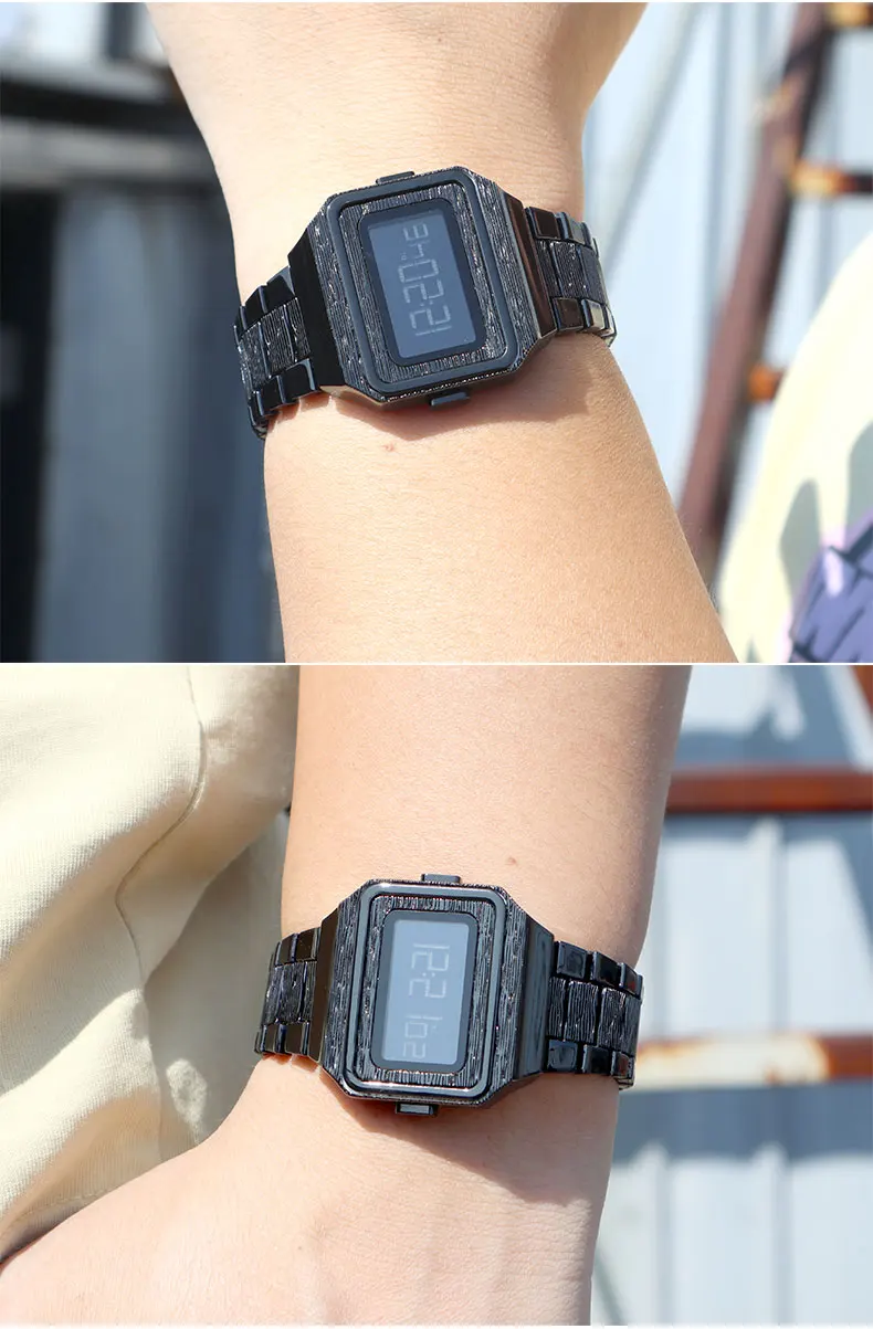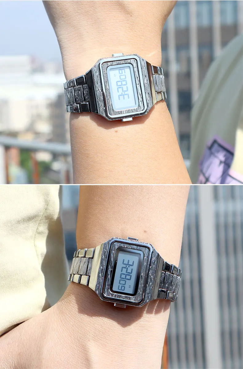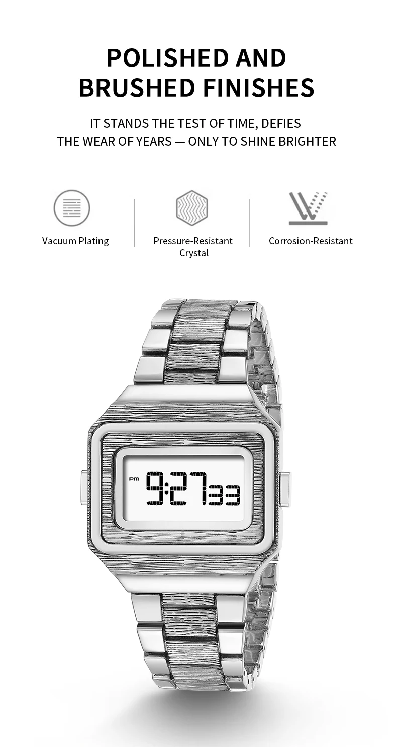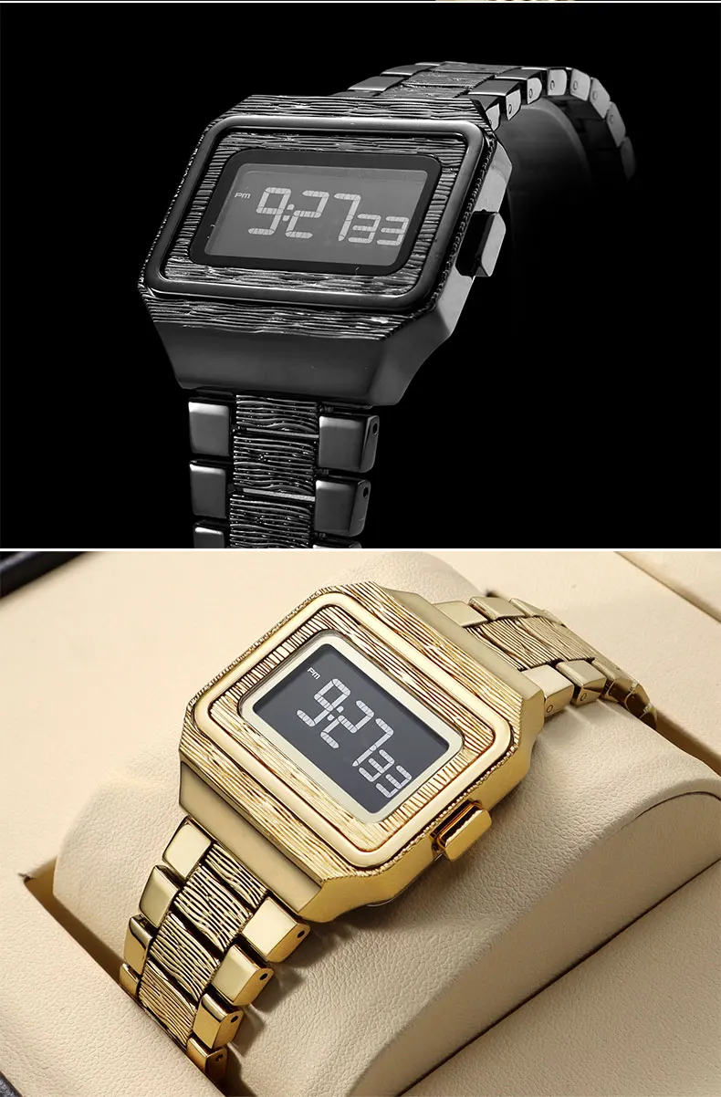 Fashion LED Digital Watch for Men Retro Simple Style Electronic Wristwatch with Stainless Steel Strap Luminous Backlight 0325