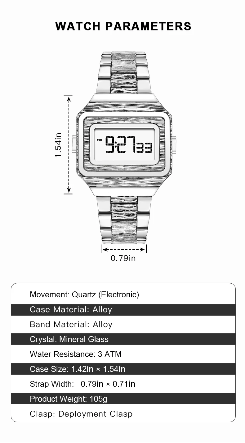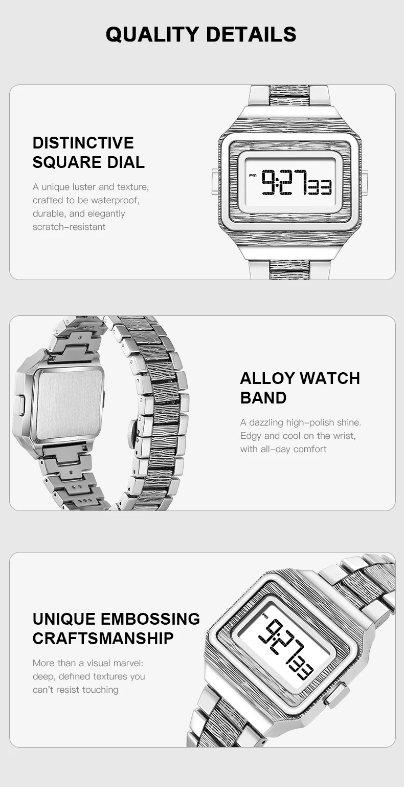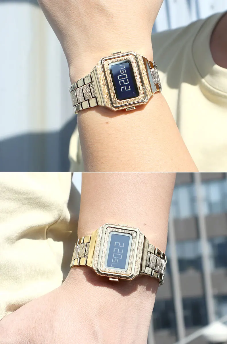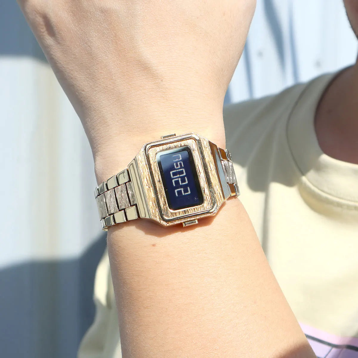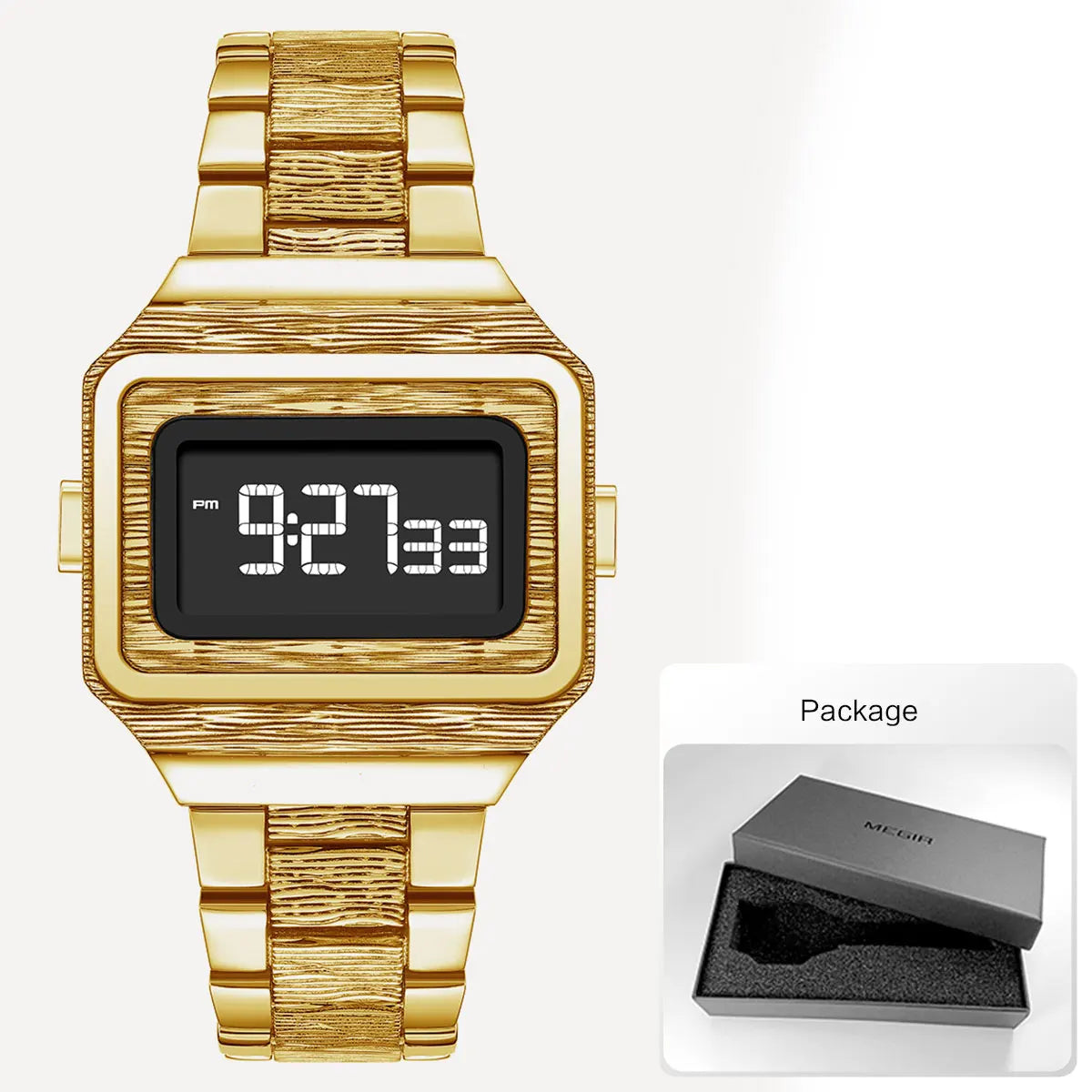 Fashion LED Digital Watch for Men Retro Simple Style Electronic Wristwatch with Stainless Steel Strap Luminous Backlight 0325