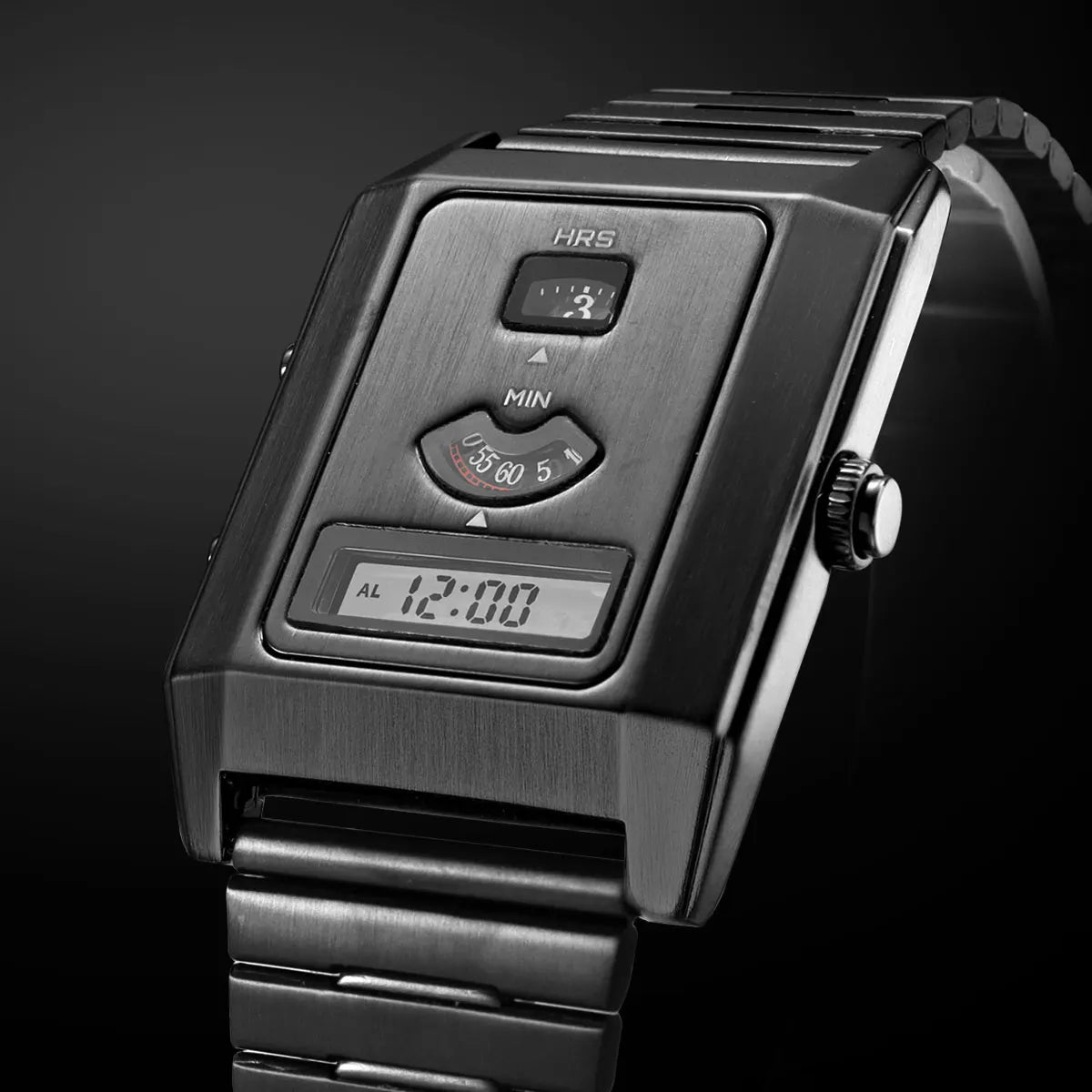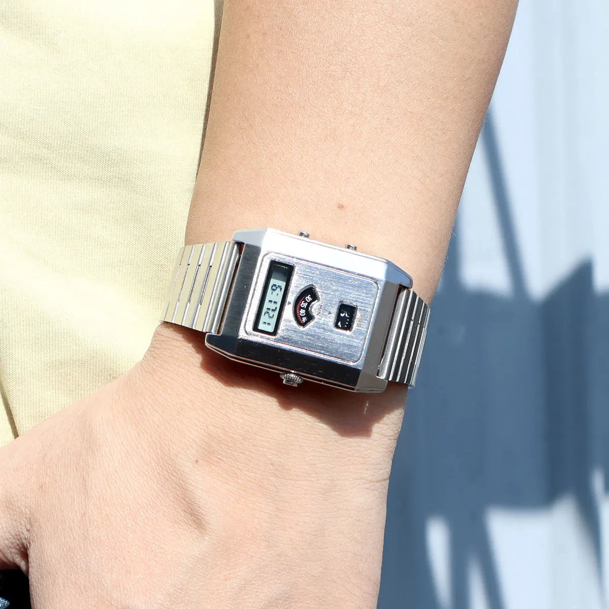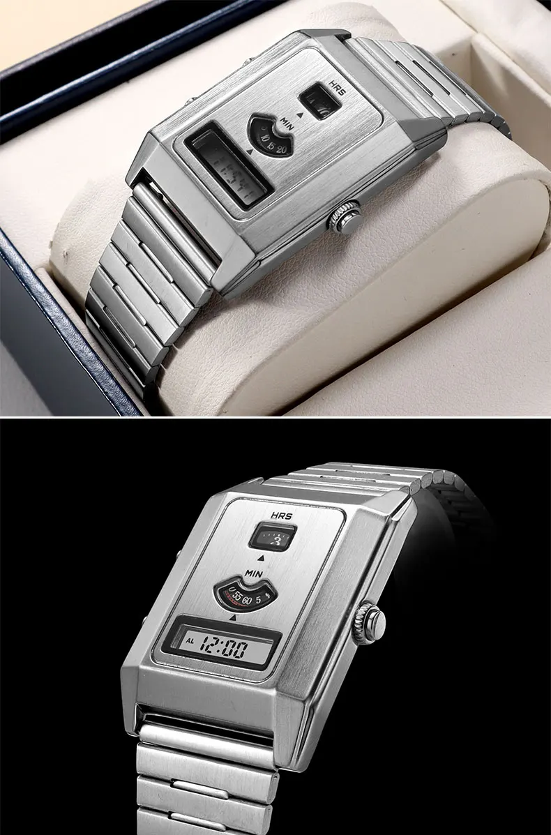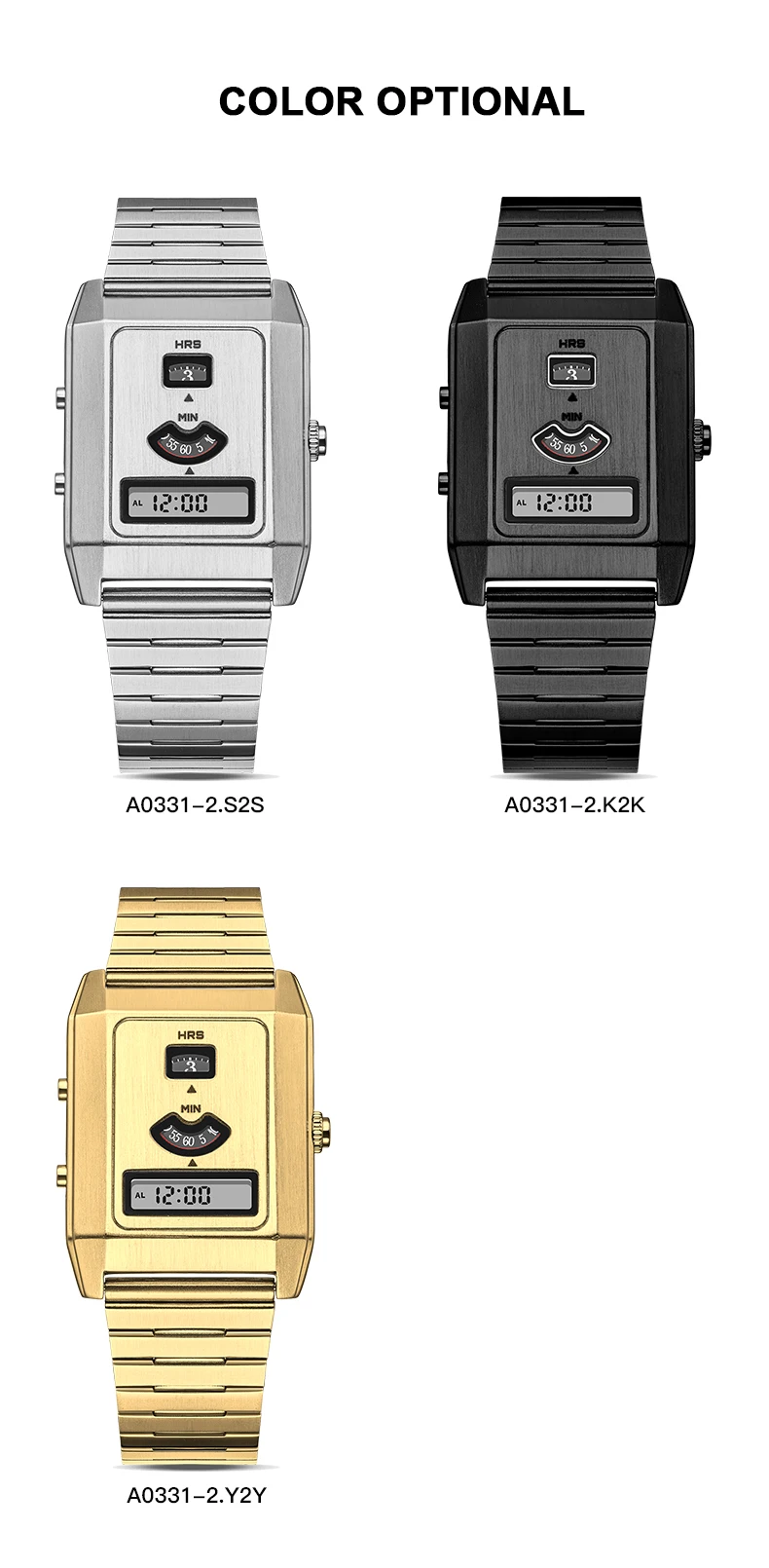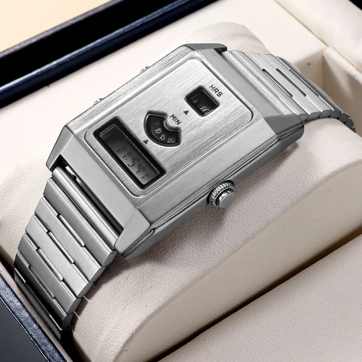 Fashion Quartz Electronic Dual Movement Men's Watch Tri-Display Backlight Alarm Unisex Wristwatch with Stainless Steel Strap