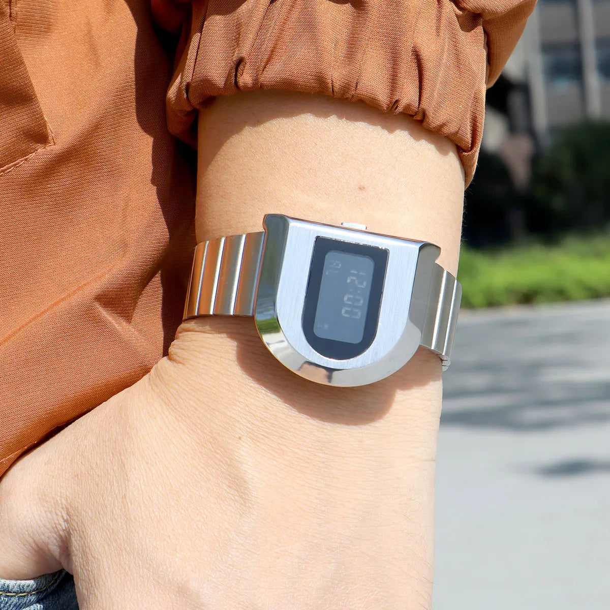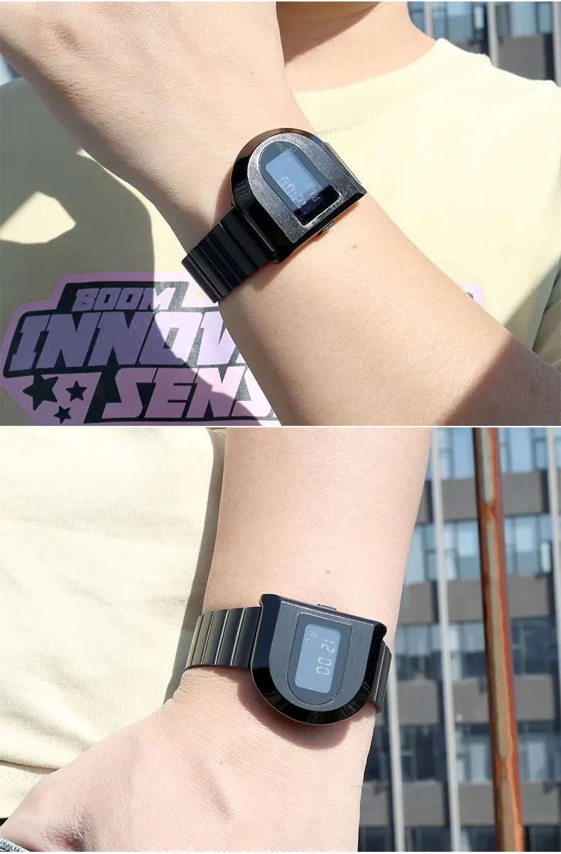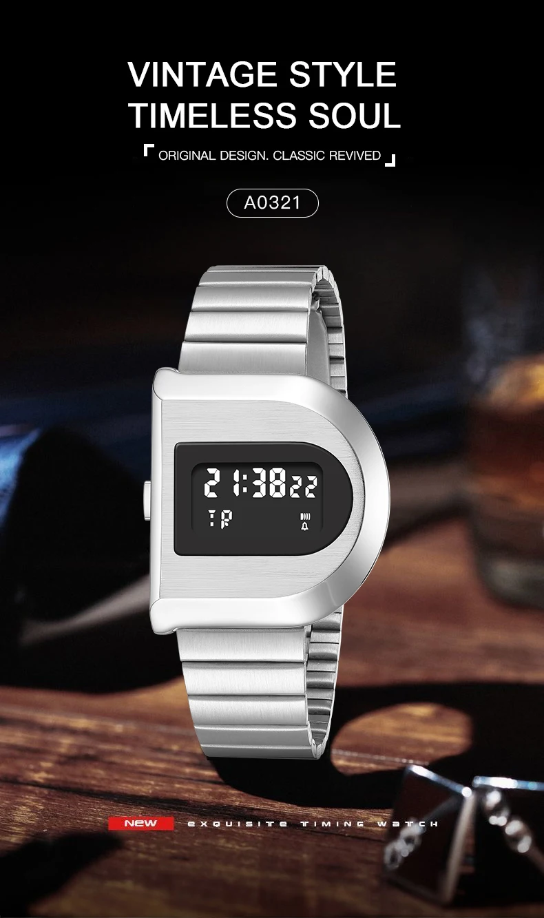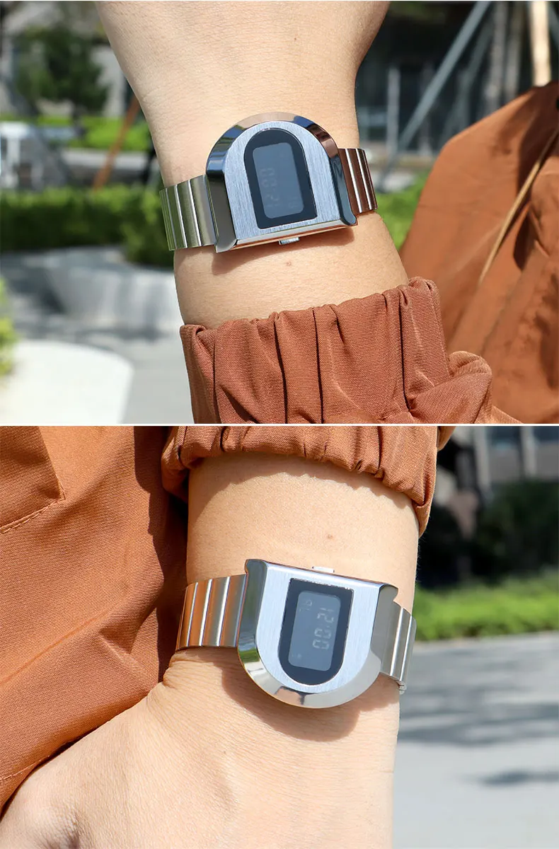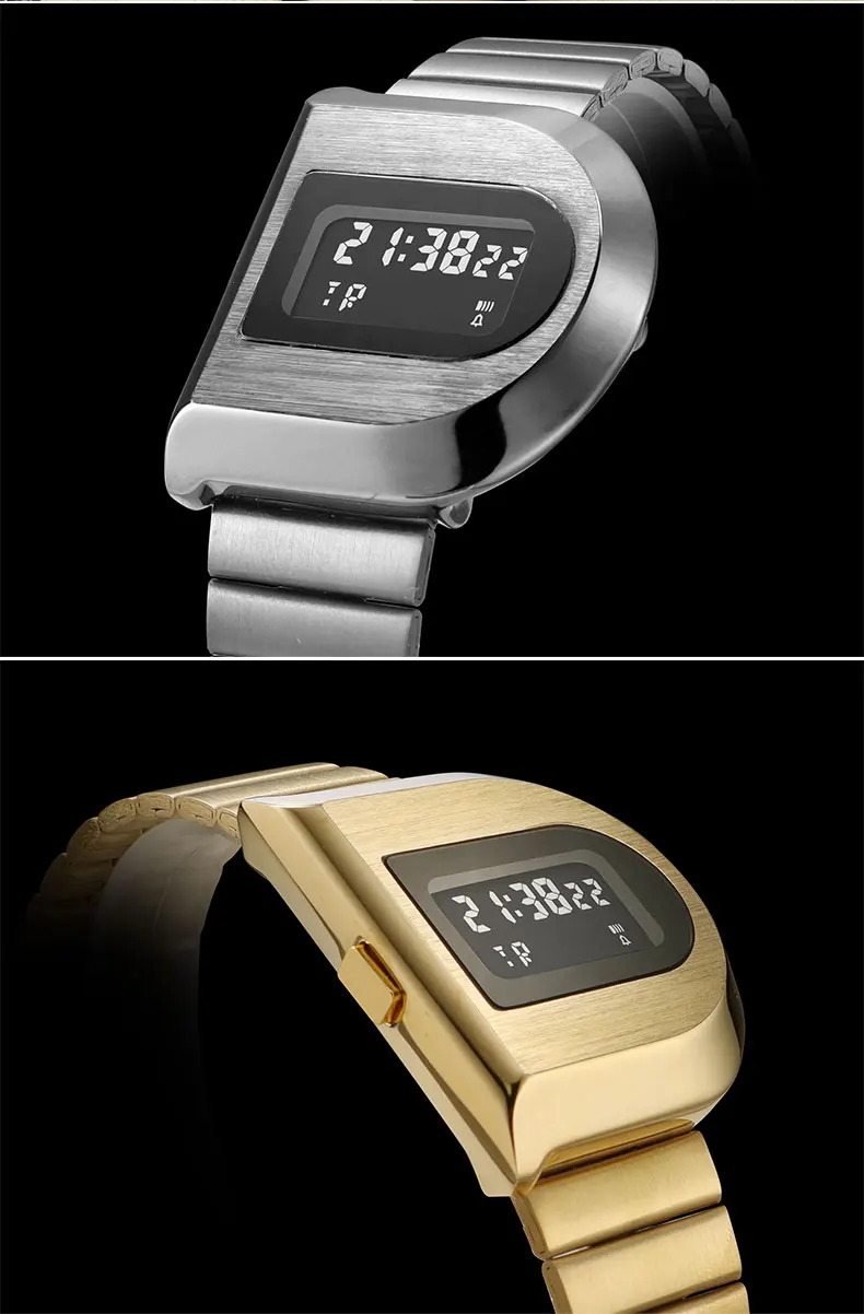 Fashion Unisex Digital Electronic Watch with Stopwatch Backlight Alarm Week Date Stainless Steel Band Wristwatch for Couple 0321