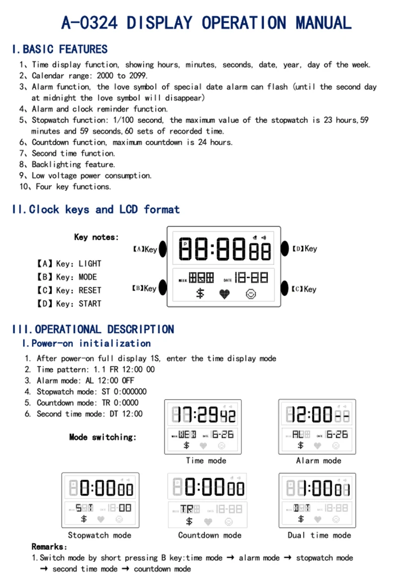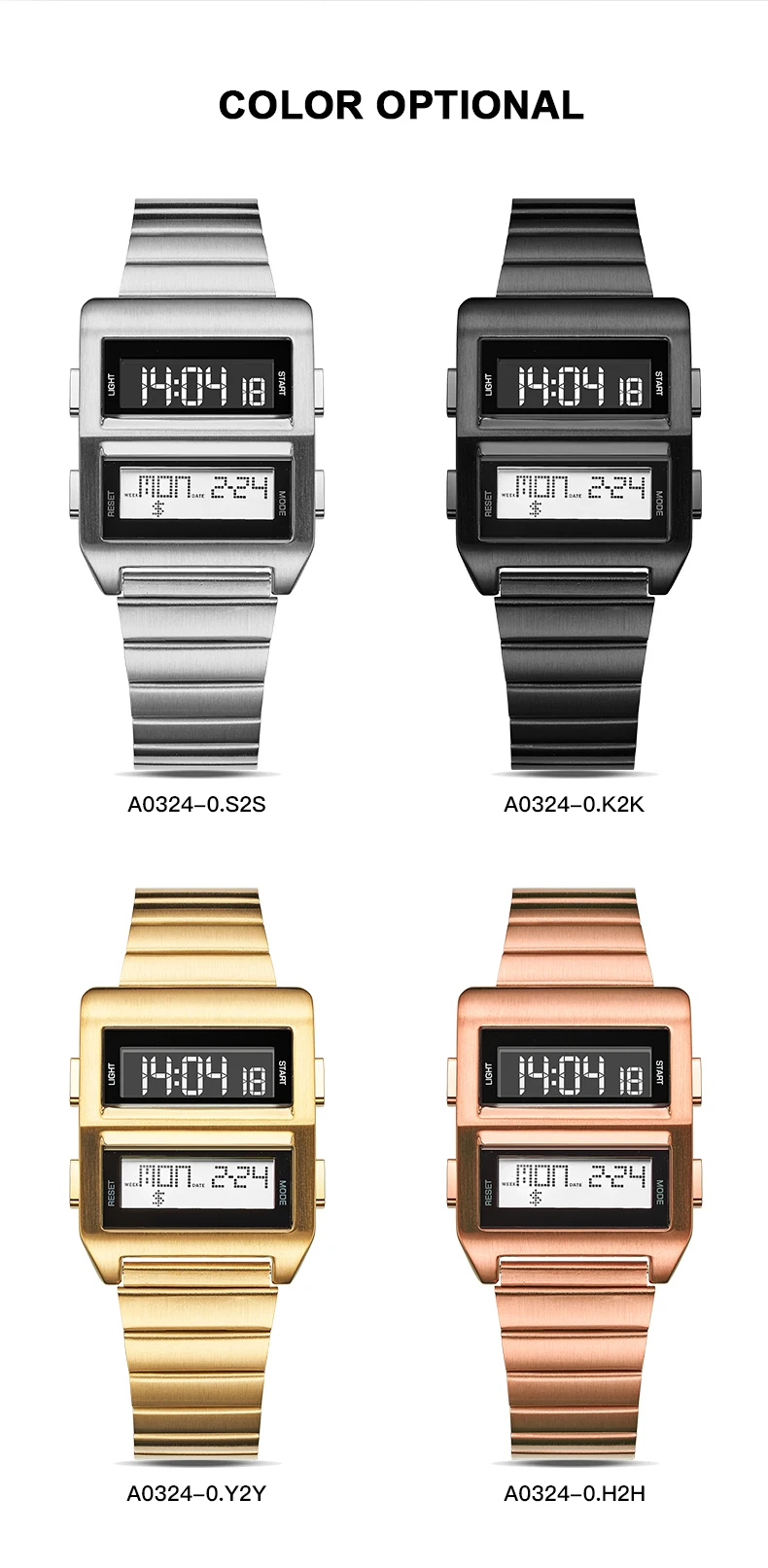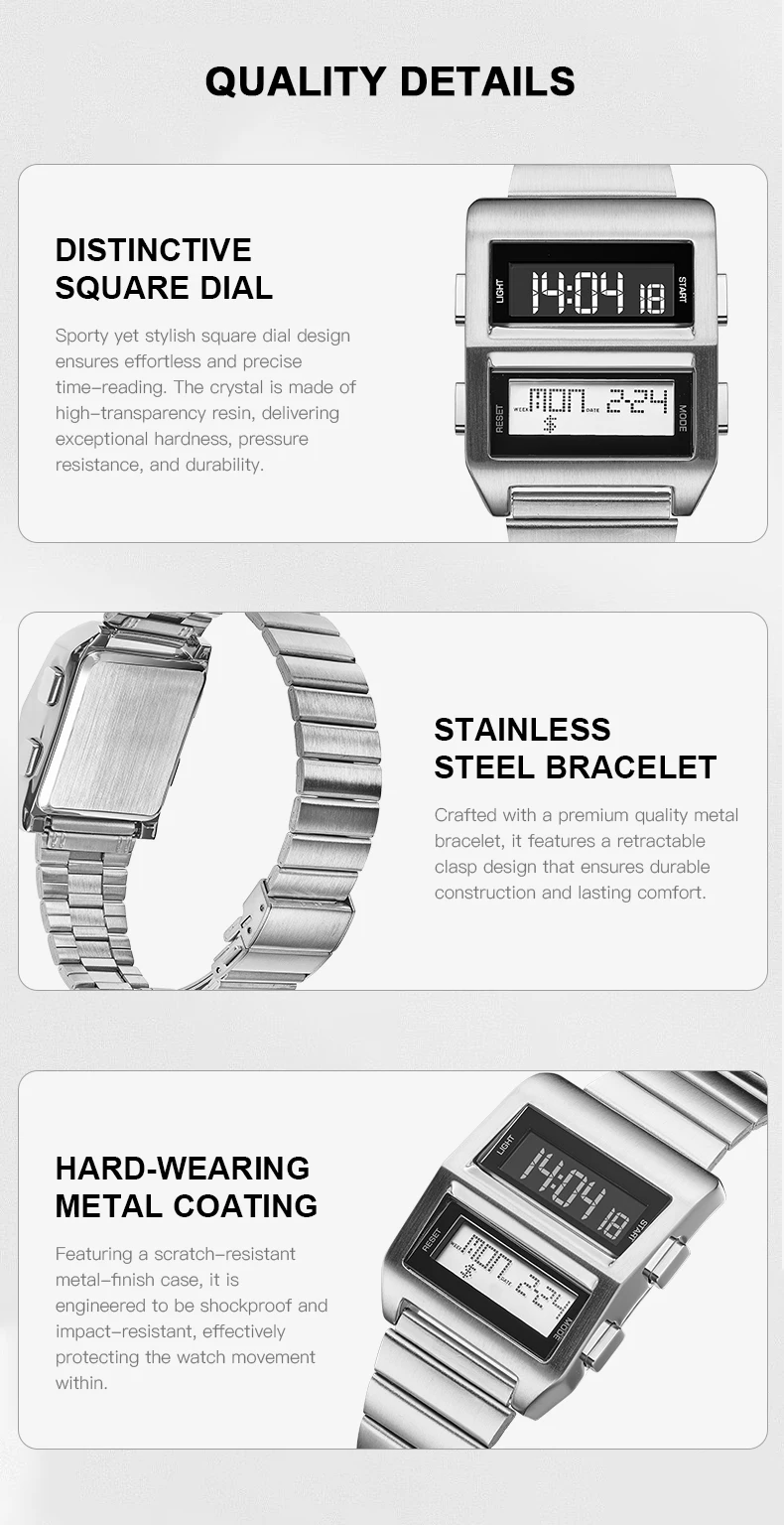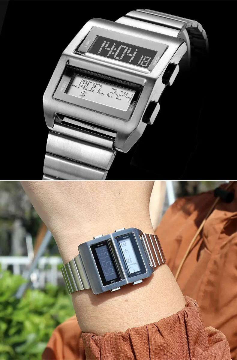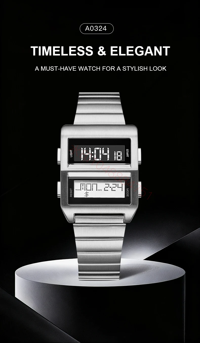Feature: Stop Watch,Led Display,Auto Date,Chronograph,Complete Calendar,Water-Resistance,Alarm,Week Display