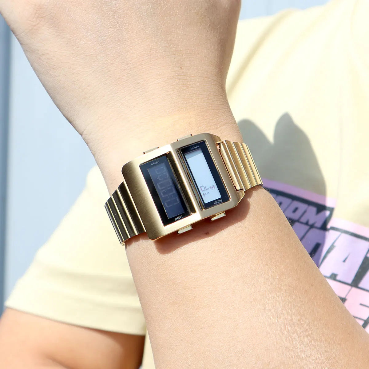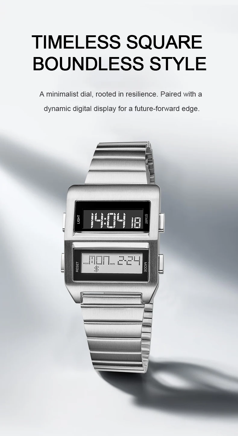 MEGIR Men's Cyberpunk Retro Driver Watch with Dual-Screen Digital Dial Sports Waterproof Wristwatch with Stainless Steel Strap