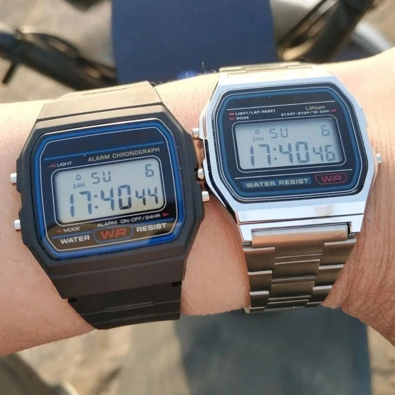 Description Dial shape: rectangle Movement type: electronic Display type: LED display Strap material: steel Buckle type: pin buckle Strap color: as shown Strap length: 18 cm Table width: 1.6 cm Dial diameter: 3.3 cm Dial thickness: 0.9 cm Waterproof: No Packing list: 1 * watch