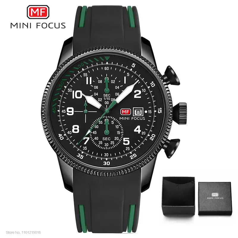 MINI FOCUS Sport Quartz Watch for Men Fashion Waterproof Chronograph Wristwatch with Blue Silicone Strap Auto Date Luminous 0379