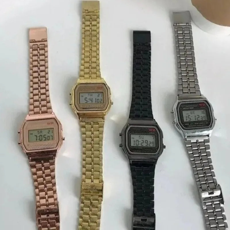 Punk Style Men's Metal Block Watch Waterproof Sports Student Electronic Watch Gold Silver Watch