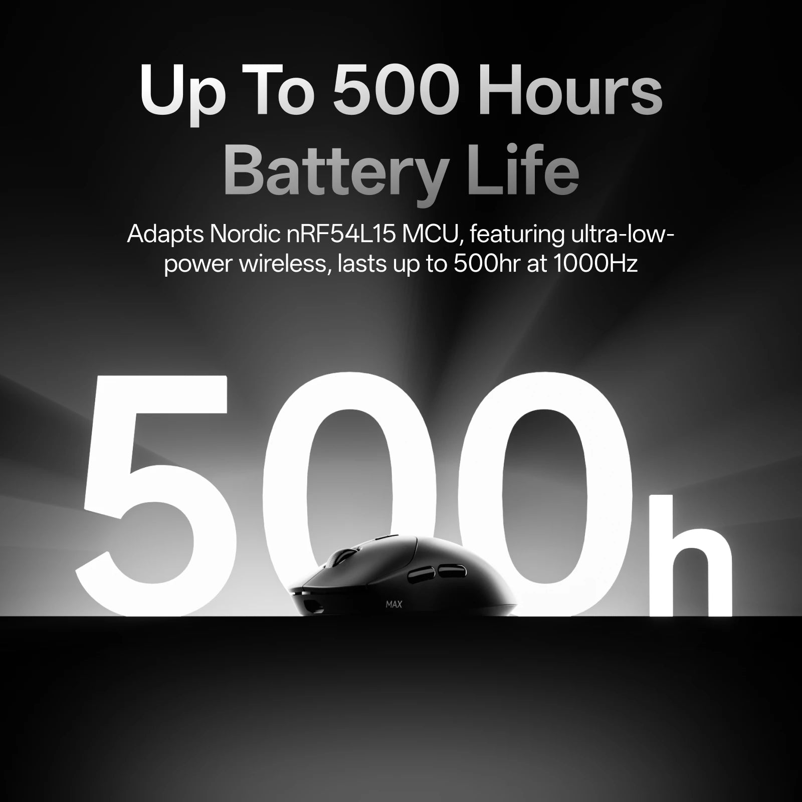 Up to 750 Hours Battery Life: Upgraded with Nordic nRF54L15 MCU that integrates an ultra-low-power wireless technology, VT2 MAX manages to make wireless gaming mouse no longer dependent on frequent charging - with an unbeatable 750 hours battery life at 1000Hz.