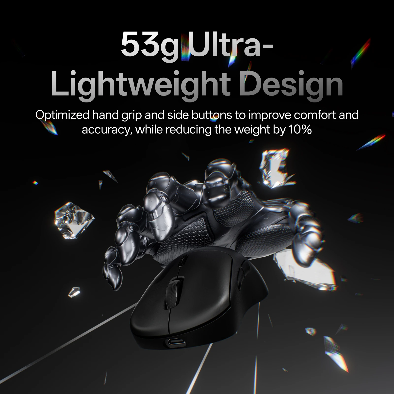 53g Ultra Lightweight: Featuring optimized hand grip and more easy-to-access side buttons, the VT3/ VT3 MAX Gen-2 has significantly improved the comfort and accuracy of use, while reducing the weight by 10% - taking your gaming performance to next-level with less strain on your hand and wrist.