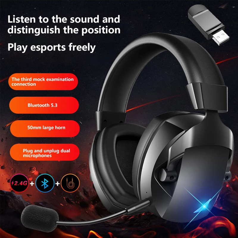 Wireless Gaming Headset With Detachable Noise Cancelling Microphone 2.4G Bluetooth-USB-3.5mm Wired Jack 3 Modes For Multi-device